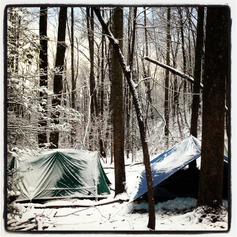 I struggle to emerge from my cocoon, anxious. The tarp we had strung up between two trees for shelter has, under the weight of the snow, collapsed on top of me and my co-worker. We find our boots and quickly assemble a new structure in the freezing rain and snow. We are wet, tired, and annoyed at the fact that we will have to wake up every hour to brush snow off the tarp to keep it from caving-in again.
