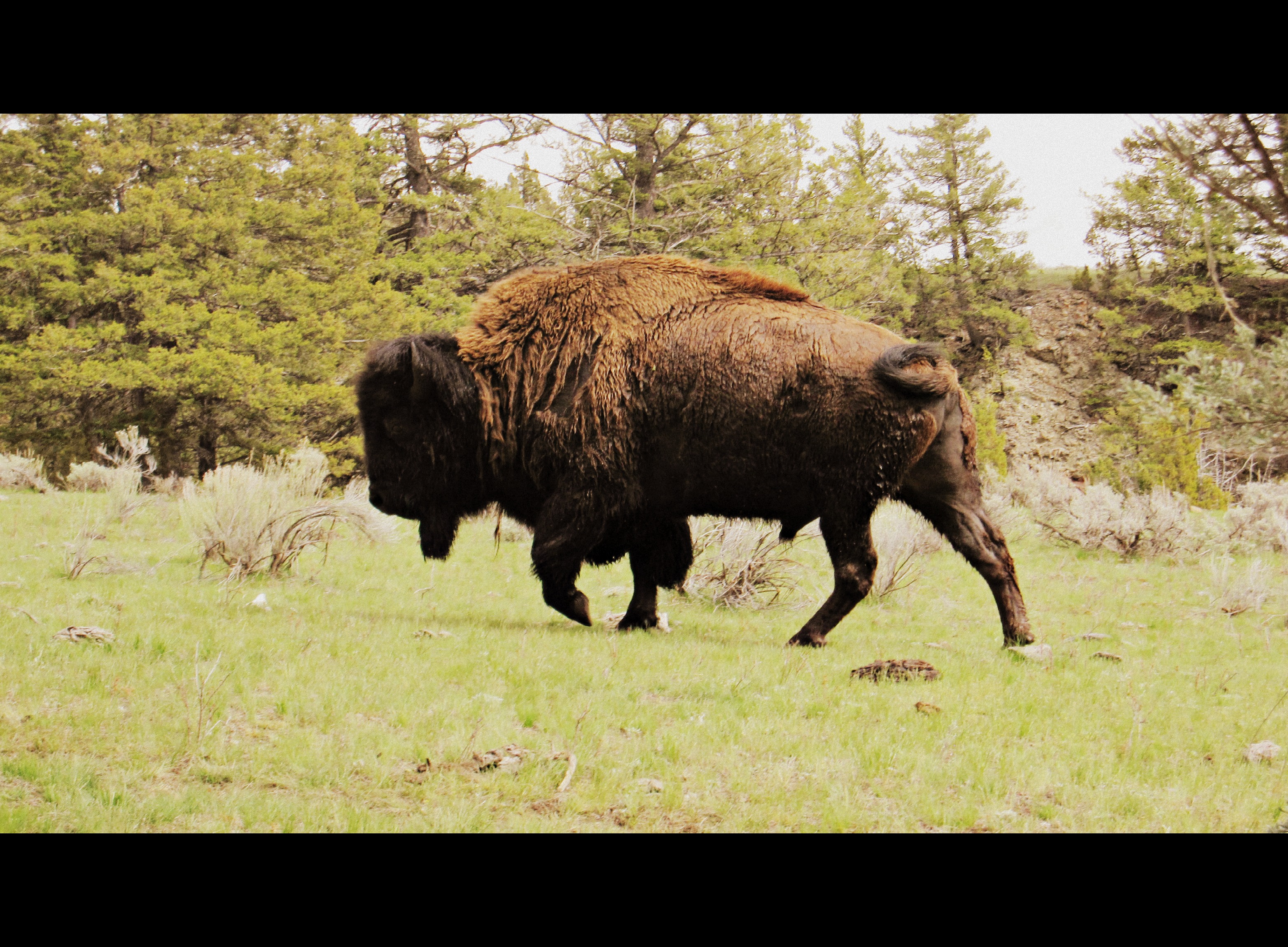 A lone bison wondering through camp. He kept his eyes fixated on us as he circled wide, out and away.